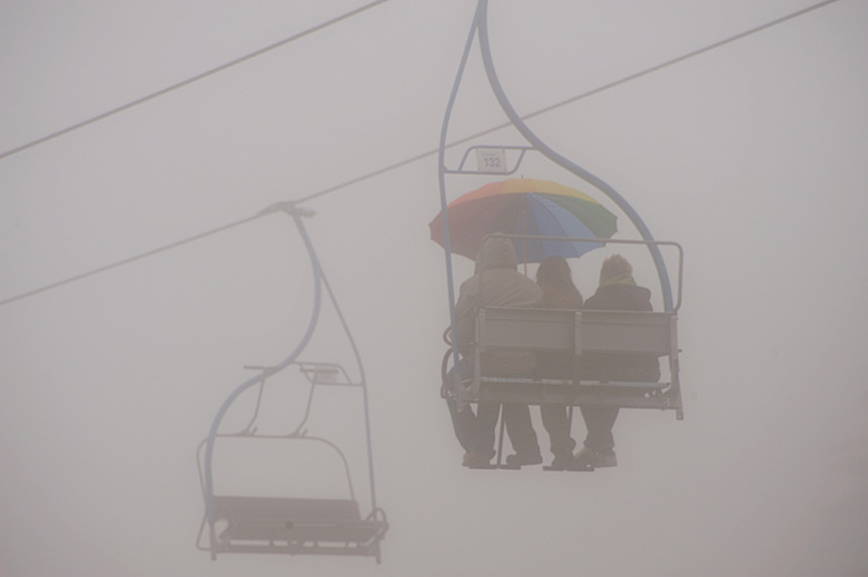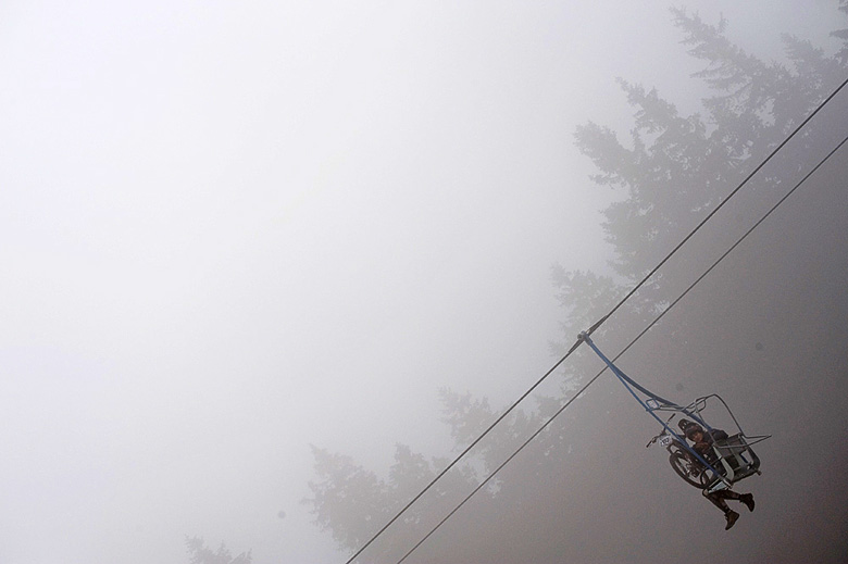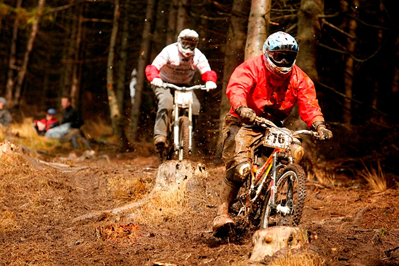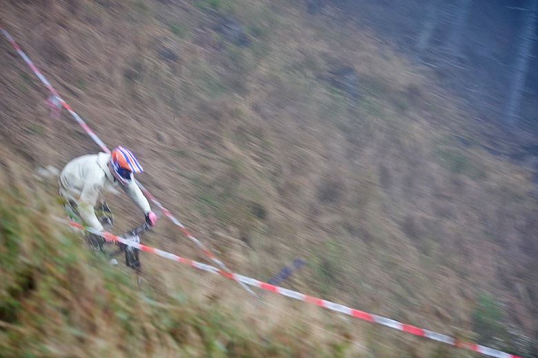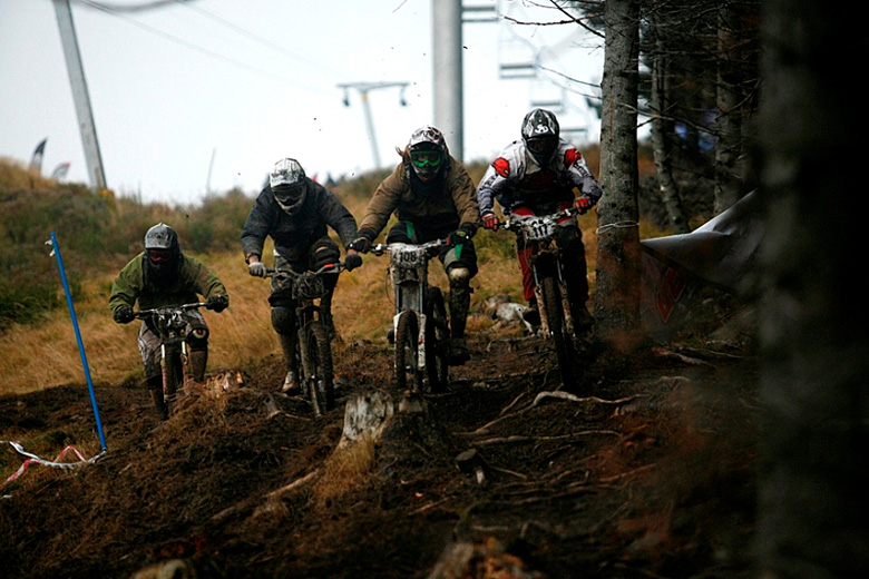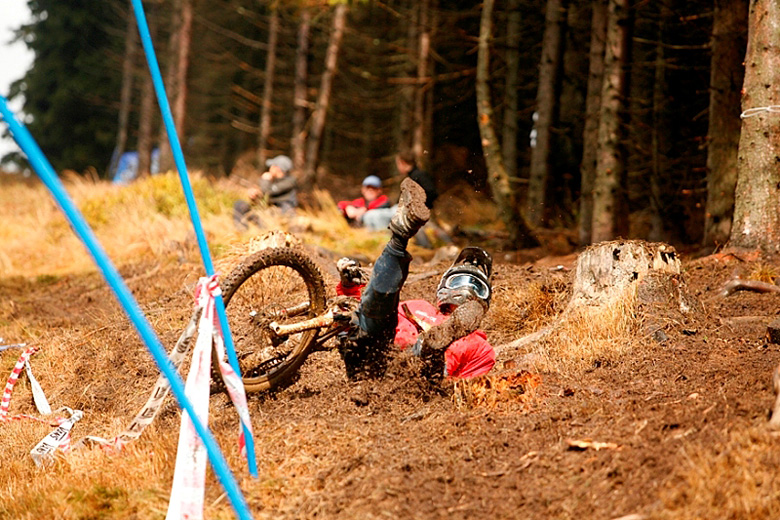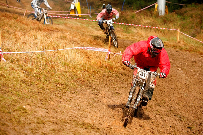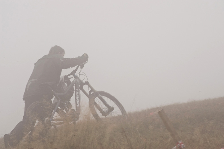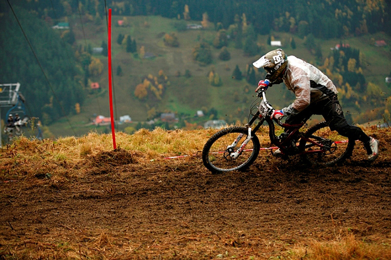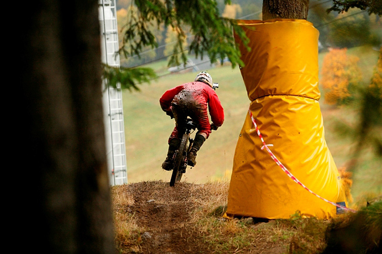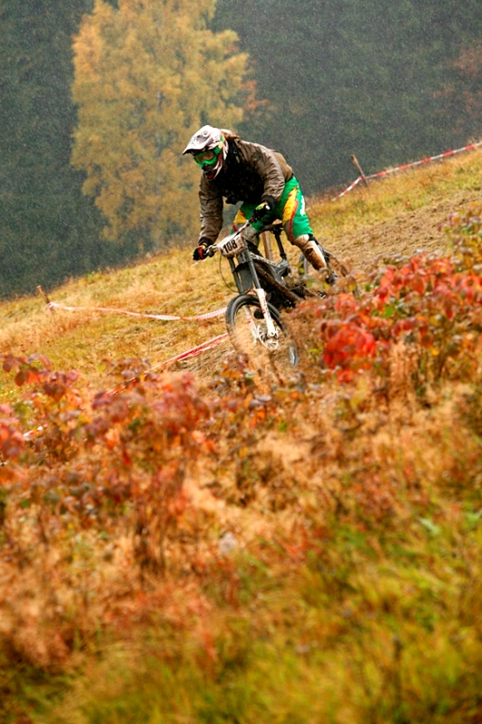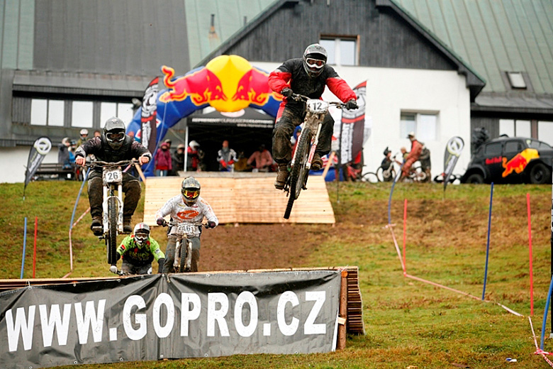 Další krásné ráno se nekonalo! Venku mlha, déšť, zima a vůbec bylo pěkně hnusně. Ke všemu tomu bylo potřeba do 12té hodiny poladit vše na samostatný závod. Najít živáčka do osmé hodiny raní bylo prakticky nemožné. Když se tedy za těchto šeredných podmínek podařilo vše vzbudit a přichystat ke startu, spustil se silný déšť a motocross na horských kolech mohl začít. Diváků se i přes tyto šílené přírodní rozmary sešlo dosti. Naštěstí se déšt po hodiněustálil a do konce závodu bylo jen oblačno s docela příjemnými 10 stupňi nad nulou. Jak je již známo, ve Velké Úpě na Marosaně není zrovna jednoduchá sjezdová trať a když se k tomu připočte celá čtveřice, která bojuje po celé dvoukilometrové délce, je z toho velmi zajímavá podívaná. I když se jedná o ukončení sezóny a tedy o přátelský závod, nikdo z jezdců nenechává nic náhodě a jdou do bojů s gladiátorským nasazením. Někteří s nasazením masového vraha?! To je hlavní důvod, proč je tento model závodu tak divácky atraktivní.