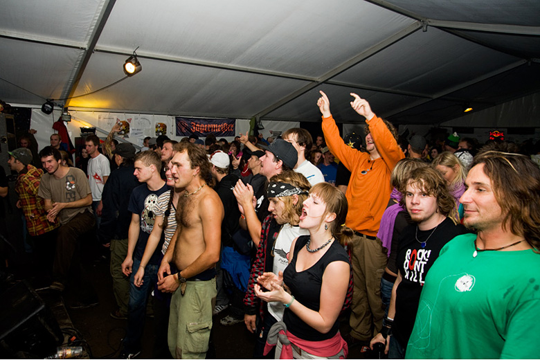 Párty, párty, párty. Tři slova která stačí vyjmenovat pro formaci CCTV Allstars, která ten večer vystupovala ve velkém tanečním stanu, ten co praskal ve švech. Rytmu ska, country, reggae a vůbec všemožným hudebním vlivům rozuměl snad každý. Více než tříhodinové, zcela úchvacující vystoupení jsem bral jako odměnu za veškerou organizaci a práci kolem mejdanů. Stačí si poslechnout jejich CD a dostanete se do podobné nálady. O opojnou atmosféru se postaral team okolo Jagermeistru a Red bullu, který to do přítomných lil jako do tanku. Do raních hodin pak kroutil své desky mixmaster Zelvín, kterému patří všechna češt. Taková taneční párty se nevidí ani ve filmech nezávislé produkce. Kdo nedržel kejtru, nebyl. Tohle prostě zahrát nejde!!! Tohle prostě žeru!!!