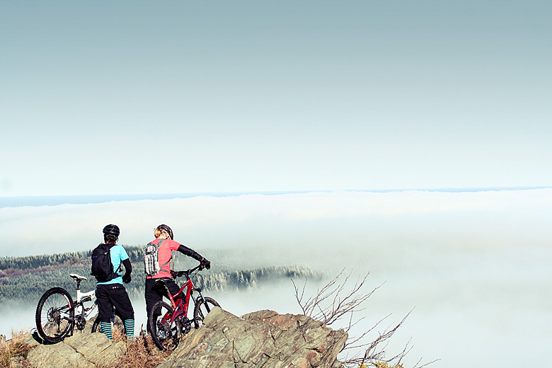 Svým celoodpruženým strojům přišly hodně rychle na chuť a až na pár nepěkně vyhlížejících crashů probíhalo natáčení jako po másle. Ke skvělému vyznění backcountry partu navíc dopomáhá i počasí. Díky inverzy holky jezdily nad mraky s úplně modrou oblohou a jejich part tak dostal úplně jiný rozměr. Co si budeme povídat, pro oko bikera snad nemůže být víc, než kombinace téměř magického počasí a dvou bikerek na celopéru brázdící v neskutečném stylu horské singletracky.