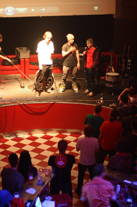 Vedle Spectra se ve čtvrtek promítal i český snb snímek Snowporning, jehož autor Karkys na pozadí své dívky dokazuje, co názvem myslel… Na druhé fotografii již dvojice autorů Štěpánisko a Vrbitch v zajetí speakra Gaspiho uvádějí své dílo. Kluci, Spectrum je fakt dobrý a jsme rádi, že všichni z d:key mohli být u toho!!!