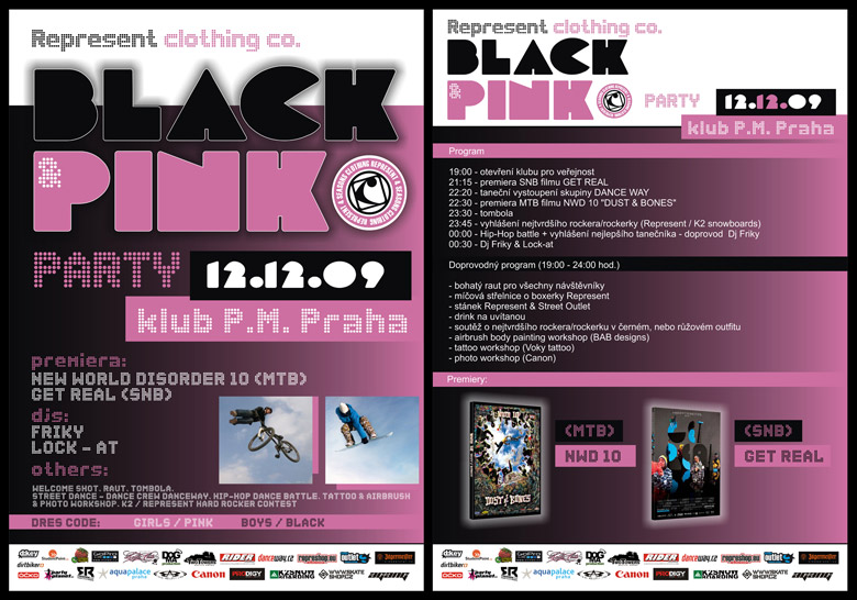 Jak už jste určitě vytušili z názvu, hlavním tématem party je černá a růžová barva. Abychom i po čtvrtém panáku od sebe rozeznali holky a kluky, rozhodli jsme se předepsat pro dívky růžový a pro kluky černý outfit. Ti co uposlechnou naší výzvy, budou jedině profitovat! Čeká je nižší vstupné, účast v soutěžích, slevy na oblečení, vouchery do Aqua palace Praha a spousty dalších výhod!