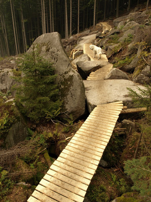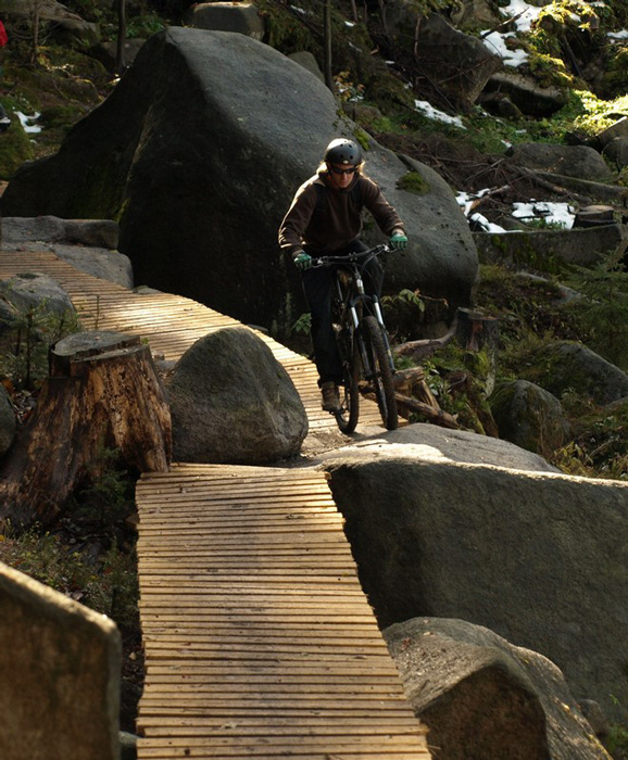 Žulové plotny, lávky a brody, i to jsou Rychlebské stezky. Při práci na stezkách jsme se snažili vytvořit traily, na kterých bychom rádi jezdili. Vměstnat do vyjížďky bikové zážitky, které jsme jindy sbírali týdny. Prostě vybrat ty špeky, které známe z vyjížděk a vložit je do jediného trailu.