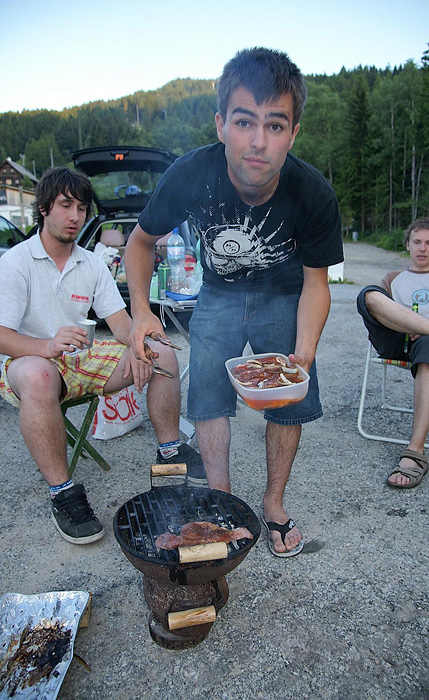 Večer se nesl ve znamení alkoholu a nedobrovolného sbližování s „domorodcem“, který se silně pod vlivem domáhal v našem CZ „kempu“ taxíku. Jelikož se ZR dohromady německy umíme jen „Hned za rohem je hodinář“ a Tatarkovi po půlhodinovém dohadování pomalu ale jistě povolovaly nervy, zachránili situaci locals, kteří si s dědou už věděli rady.