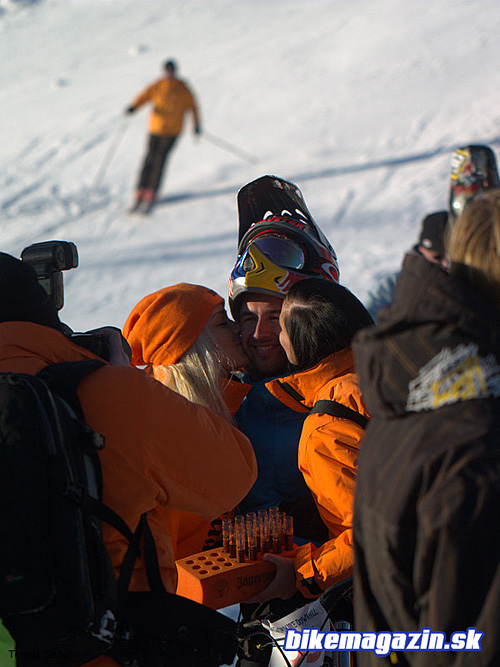 Pod priestorom cieľa to žilo tak ako sa na hory patrí. O zohriatie sa starali Jägermeisster Mädchens, a stánok kde bolo na výber tekutých radiátorov viac než dosť. Kto mal chuť mohol pri muzičke posedieť na nevykurovaných lehátkach. Popritom sa počet vyvážajúcich na štart nemilosrdne zmenšoval a netrvalo dlho a na programe zostali už iba jazdy malého a veľkého finále.