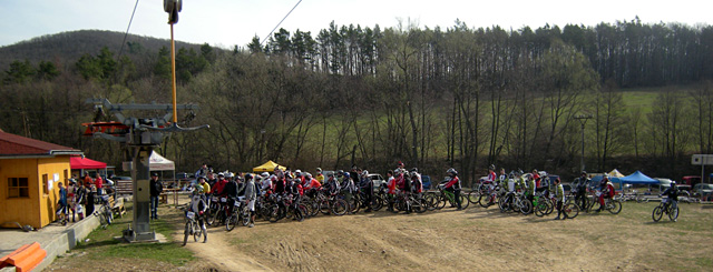 Na místo jsem dorazil kolem deváté. Po rychlé registraci, jsem za 410 kč obdržel energeťák, tyčinku, číslo, časopis Biker a pernamentku na vlek v podobě nálepky. A hurá na trať. Po sobotním závodu na supercrossové trati bývalýho SP, na kterou nemám nejlepší vzpomínky a na památku jizvu na předloktí, přišla na řadu trať pojmenovaná Austrálie. Krátká rychlá trať, na které nechybí skoky, zrádné horizonty a i menší uphill byla hodně rozbitá a pod koly víc než 150ti příhlášených riderů se tu a tam vyjížděly zrádný korýtka. Ale jinak se prášilo a počasí vyšlo na jedničku.