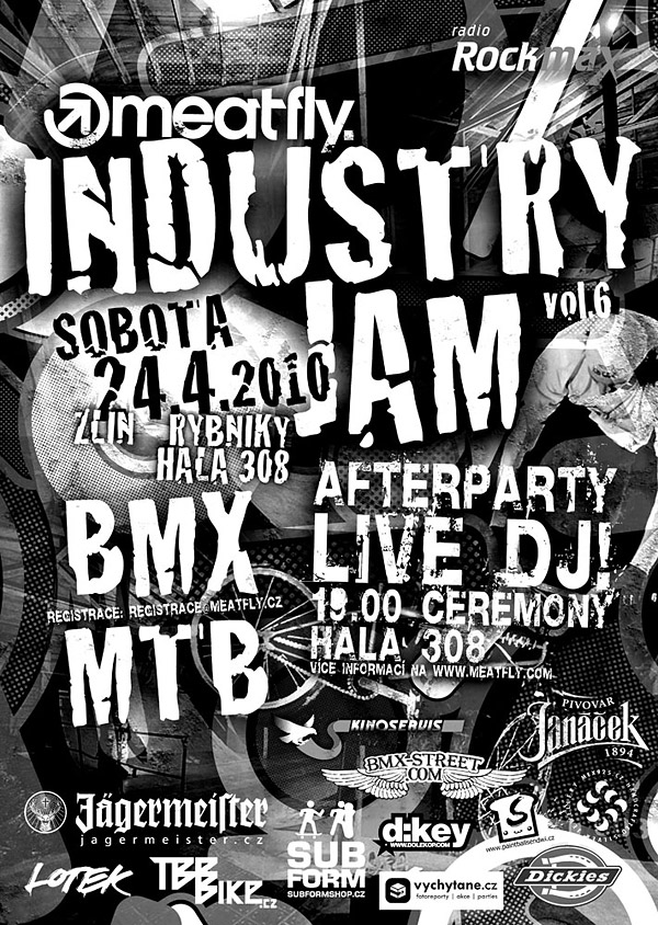 Jak už bylo řečeno, závod MeatFly Industry Jam se pojede ve zlínské hale 308 v průmyslovém areálu SVIT-rybníky a to 24.4.2010. Závodit se bude v nově zrekonstruovaném dřevěném parku klasicky v kategoriích BMX a MTB.
