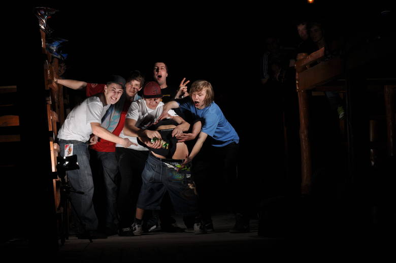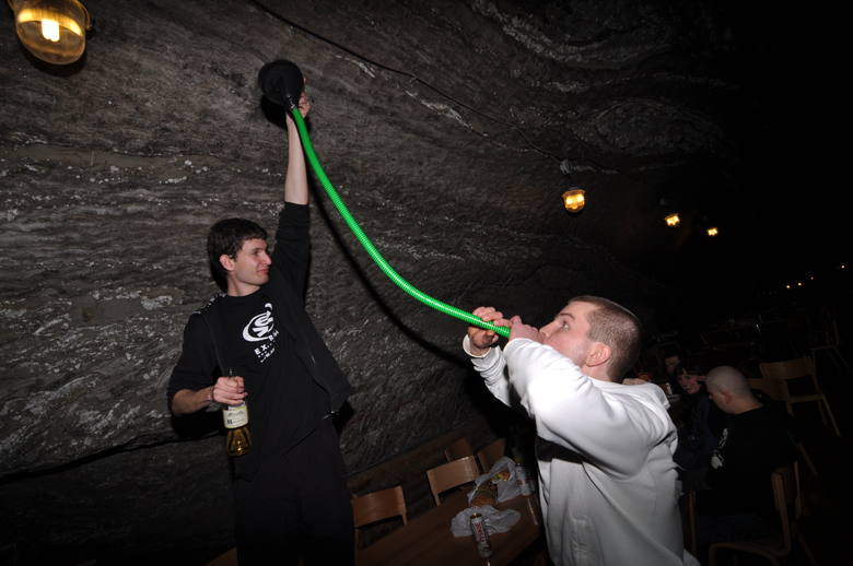 Po registraci a nutné prohlídce kol dostáváme každý tričko a přívěsek s cedulkou Zawodnik a nákladním rychlovýtahem sjíždíme se svými rowery o téměř 300m pod zemský povrch do spleti šachetních chodeb s kolejemi, po kterých se dostáváme do místa celého dění, do obrovské místnosti s parketovou podlahou, bufetem, disko koulí a basketbalovým košem. Komu by to připadlo málo, jistě ocení přístup na Wi-Fi nebo krácení času hraním na konzolách X-BOX. Ubytování v podobě patrových postelí, které byly jedna vedle druhé rozmístěny v sále pro asi 250 lidí nebylo zrovna košér a najít si klidné místo na spaní bylo téměř nemožné. Tady narážíme na zbytek české výpravy. Večer ještě proběhne nezbytné přivítání s polskou komunitou, což nás nutí požít první alkohol, který vedle postele odkládáme nemálo hodin po půlnoci.