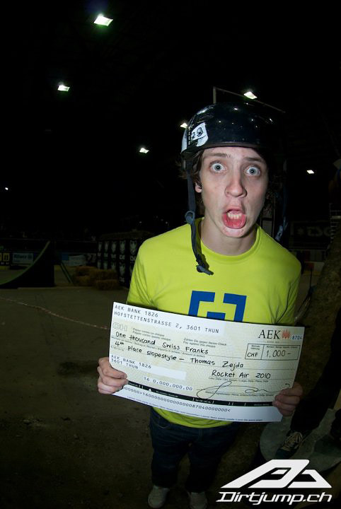 Do finálové patnáctky jsme tedy nastoupili všichni z česko-polské reprezentace. Finále se jelo na dvě jízdy, z nichž se počítala jen ta lepší. Netro to chtěl v obou jízdách pořádně vyhrotit, to se mu ale nepovedlo a nakonec skončil na čtrnáctým fleku, což ale v týhle konkurenci není vůbec špatnej výsledek! Bartek si naopak polepšil a skončil na osmým místě. Já jsem si svoje čtvrtý místo udržel a vyfasoval jsem parádních 1.000CHF.