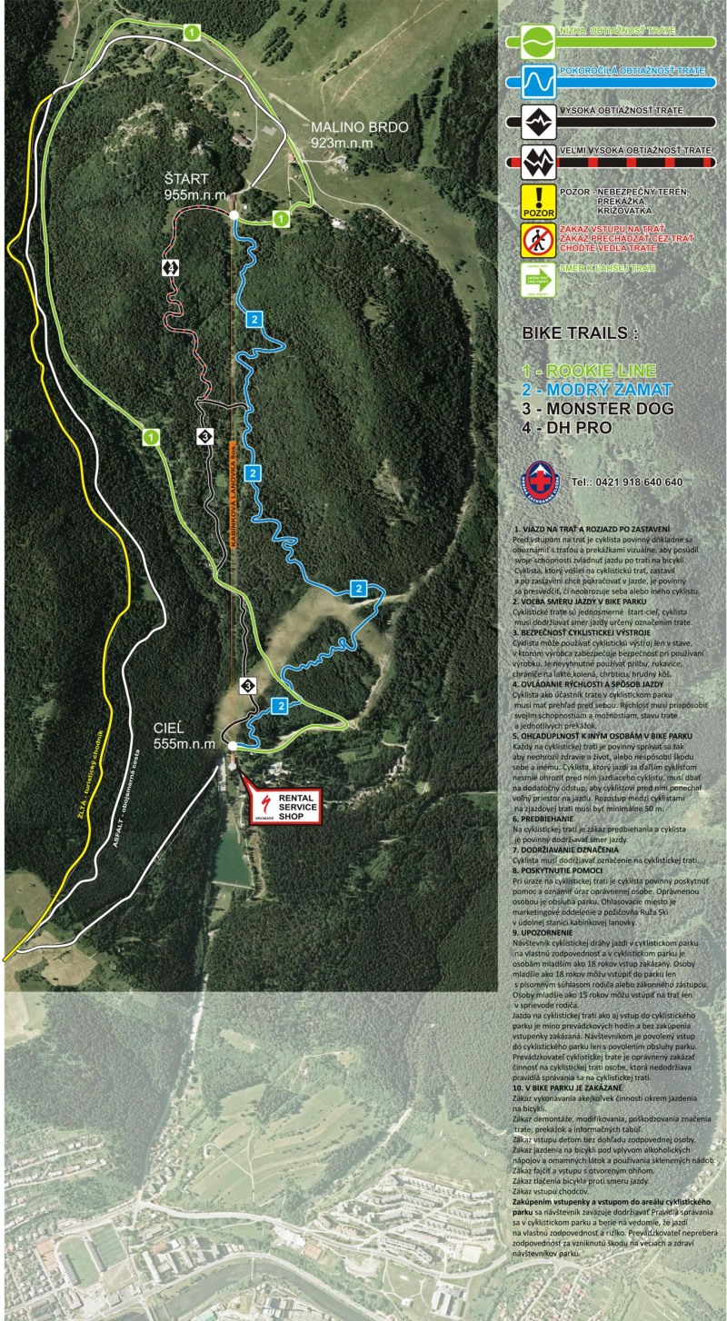 Kategórie: Juniori, Muži, Hobby, Masters a Muži-Hardtail budú jazdiť trať dlhú 2200m. Trať na mapke začína pod číslom 4., ako DH PRO, a neskôr pokračuje pod číslom 3., ako MONSTER DOG. Prvá polovica trate DH PRO má úplne nový začiatok, ktorý ešte nie je na mapke zaznačený (oproti původní verzi zjednodušený, ale čeká na nás poměrně macatý skok, pozn. red.).