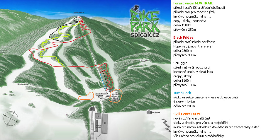 Od začátku května běží již údržba sjezdových tratí. Všechny traily jsou již uklizené a vyšejpované. Pracujeme také na zcela nových věcech na tratích i ve skillcentru u nástupu na lanovku. V tomto roce bude otevřena i zcela nová trať s názvem Forest virgin. Svým charakterem bude velmi plynulá a hravá. Tratě budou mezi sebou na několika místech propojeny takže bude možné je při sjezdu kombinovat. Budete tedy mít více možností si vybrat, které úseky na které trati pojedete.