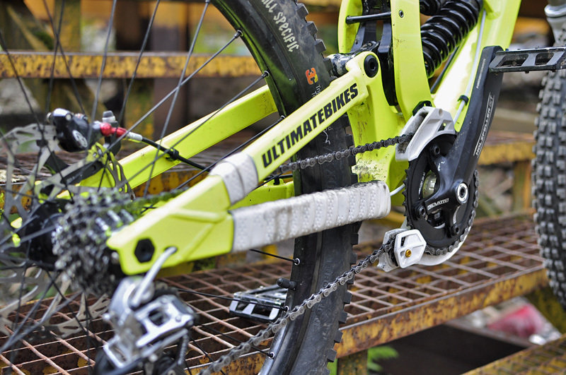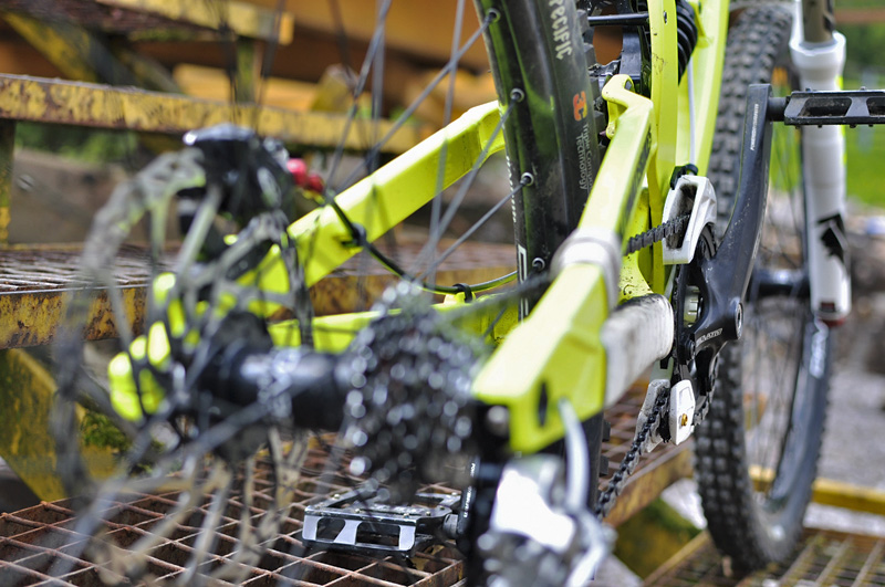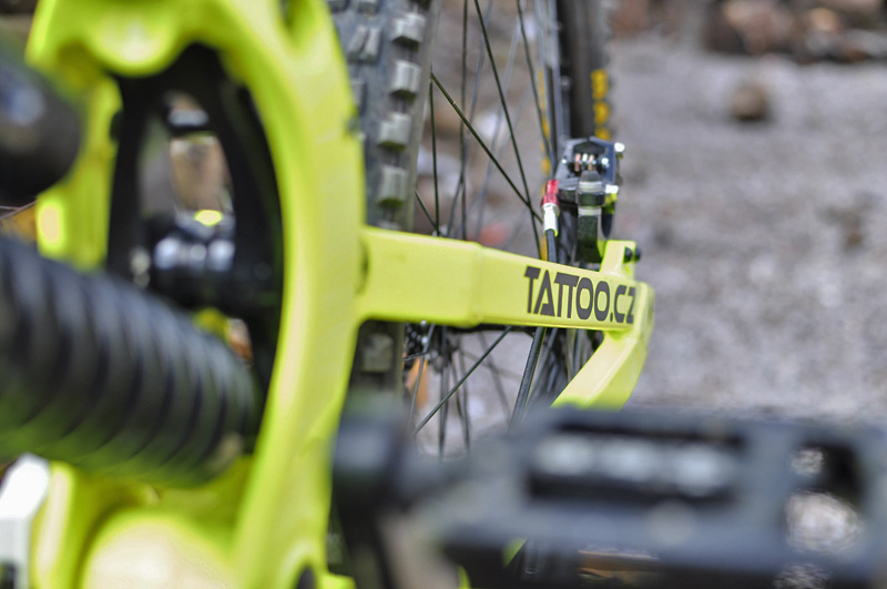 pevnou osu (150mm). Geometrie je dělaná pro čistokrevný DH použití, takže