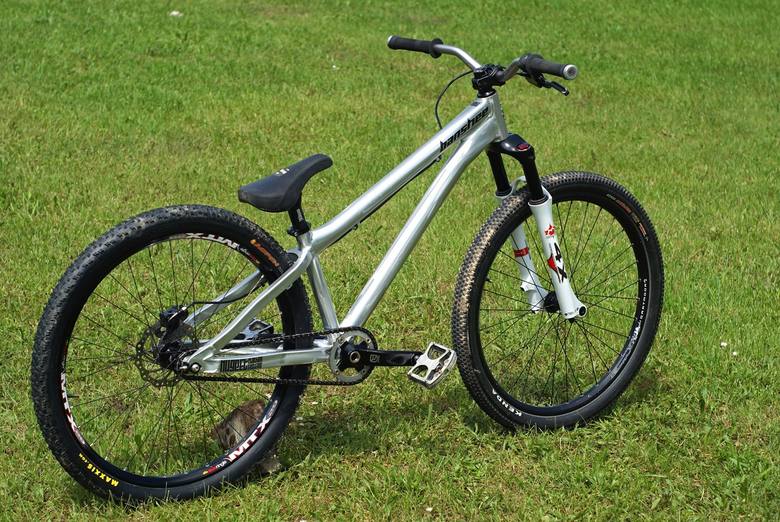 V průběhu letošní tuhé zimy se mi podařilo sehnat dostatek prostředků na to abych si poskládal kolo dle mých představ. Komponenty jsou osazeny na rámu Banshee Bikes AMP, což je novinka, která nahradila v repertoáru této kultovní kanadské firmy starší modely určené pro dirt/street jakými byli Morphine a Scratch. Ty byly pověstné svou životností, ne však váhou. Díky pokročilým technologiím se podařilo tento neduh odstranit a AMP se může pyšnit váhou cca. 2050g v raw verzi kterou vlastním. Oproti jiným rámům které jsem v minulosti vozil, se vyznačuje především precizním dílenským zpracováním, neuvěřitelnou tuhostí zadní stavby a agresivní geometrií která mi sedla hned při první projížďce.