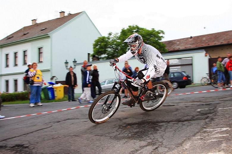 Naposled jdu zkouknout trať, jestli je v použitelném stavu. Zjišťuju, že je všechno sjízdné a v mezích míry i bezpečné. I když někteří mě usvědčují o opaku. Během tréninku si sanitka veze minimálně jednoho člověka na kontrolu do nemocnice. Přemotivovanej místňák a mokrej asfalt není dobrá kombinace. Ale což, pády ke sjezdu patří. Nakonec sanitka jela údajně 10×. Já si konečně můžu jít pro kolo a přehodit se do pozice jezdce a ne pořadatele. To se ale daří tak nějak na půl, protože mě pořád otravujou od časomíry a televize. Začínám se děsit vyzvánění svého telefonu. Pak ho dokonce slyším, i když nezvoní. V tomhle vyděšeném stavu se pohybuju po městě celý den.