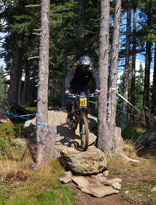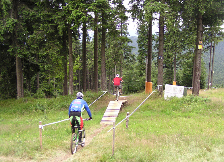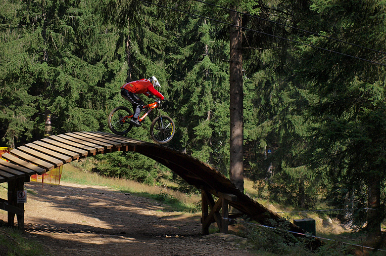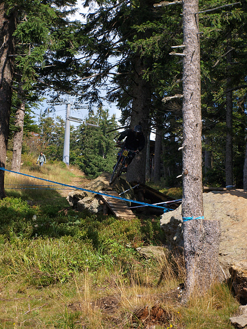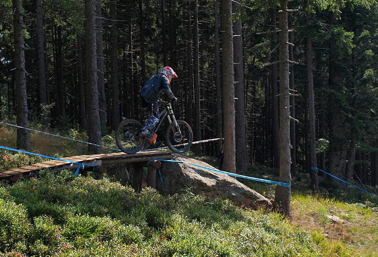 Po skocích najíždějí závodníci do lesíka, kde jsou zavřené zatáčky. Poté je vystřídají krátké přejezdy po sjezdovce a technické úseky v lese. Jedním z nejatraktivnějších míst bude na trati určitě wallride a pak následující most přes cestu, který ti nejrychlejší přeskakují. Následuje rychlý přejezd přes sjezdovku a přímo pod lanovkou skok přes potok, ze kterého najíždějí závodníci do 2 klopených zatáček. Po průjezdu lesním úsekem, se již jezdec blíží k cíli. Před cílovou bránou, která bude takřka u nástupu na lanovku, si ještě pohraje s odkloněnými zatáčkami a pak už jen poslední skok těsně před průjezdem cílem. Uvidíme, jak se s touto tratí popere evropská elita.