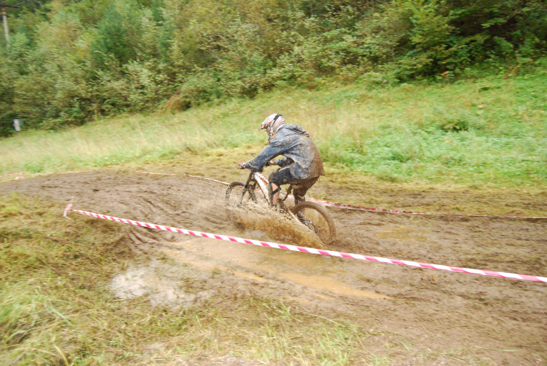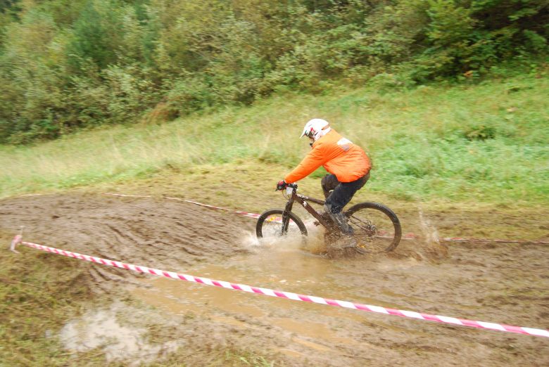 i přes velké mokro, dvakrát na kole projel trať, aby nalezl ty nejlepší