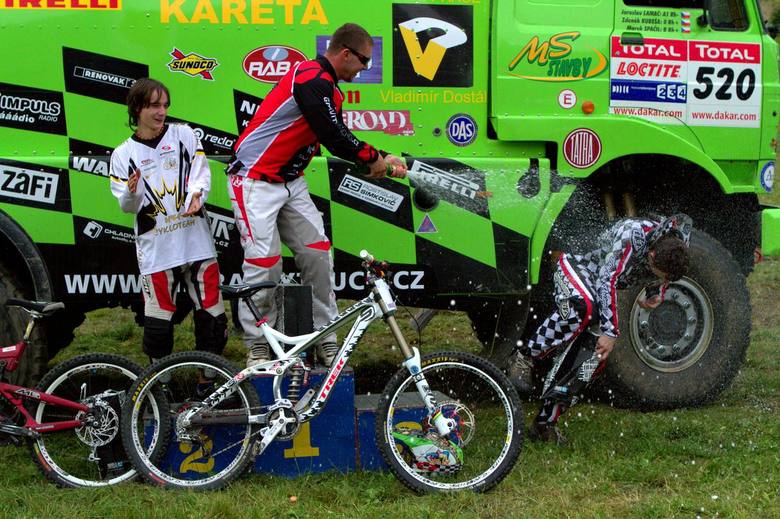 V 12:00 odstartoval závod ve sjezdu Full/Hard Tail. Závod pěkně odsýpal a tak po sjezdu následoval paralel. Paralel se ukázal jako jedna z nejdestruktivnějších disciplín celého dne. Jezdci i kola dostávali pořádně zabrat. Potom celém šílenství přišel na řadu mega šílenec v podobě řidiče speciální Liazky Czech DAKAR Teamu, který to pořádně kropil po sjezdovce a skoky s obrovským kamion vzbuzovali patřičný respekt!