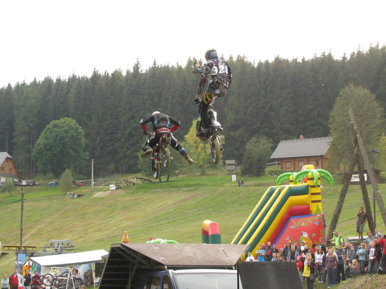 Po oficiálním vyhlášení vítězů přišel na řadu Freestyle motocross pit bike show v podání Luďka Jankovského a Martina Mareše. Kluci to hecovali co to dalo a po psycho skocích se Luděk Jankovský pustil i do backflipu, bohužel nezdařilo se jak by mělo a Luděk se svým strojem šel k zemi. Luděk byl OK, mašina to odnesla a tím pokus o druhé beko byl fuč. Bouřlivé ovace všech diváků nebraly konce a tak kluci slíbili, že na další akci dorazí a o backflip se pokusí znovu. Následně odstartovala destruktivní Open air after párty a to i s Monster energy, který ten večer doslova tekl proudem všude a po všem! Pařilo se do brzkých ranních hodin na baru Chaty Kopřivná a někteří pokračovali i následující den.