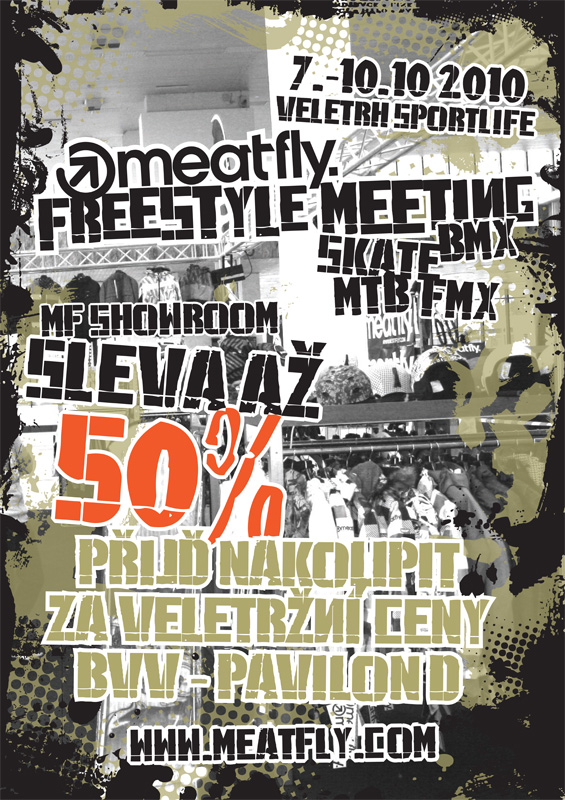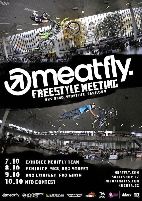 Meeting čili setkání! Neponecháme nic náhodě a opět se těšte na skateboarding, bmx, mtb fmx v podání Petra Kuchaře a jeho party. Ve čtvrtek a v pátek bude zpestřením exhibice riderů Meatfly teamu, své triky předvedou David Janáč, Kuba Kalina, Pavel Caha, Jakub „Fox“ Skupin, Honza „Netro“ Netrval, David Foglar a další pozvaní rideři.