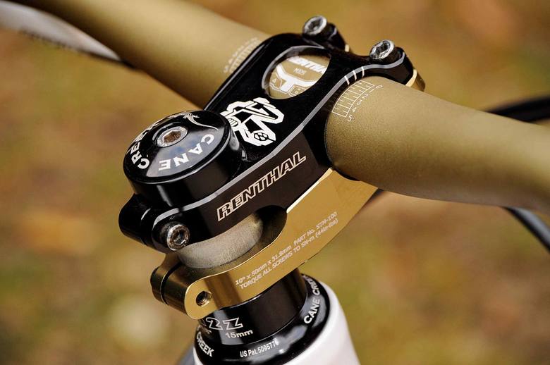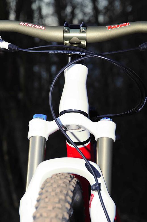 Kokpit: řízení je v režii značky Renthal, která je no. 1 v motokrosu a nyní i díky teamu Monster Specialized čiří vody v bike scéně. U 4X kola je základem nízká váha a velká tuhost komponentů. V kokpitu se o odlehčení stará představec Renthal Duo, který je podélně dělený, tím se odstranil přebytečný materiál a váha se zastavila tak na 140g. Řidítka Renthal FatBar jsou zkrácená ze 780mm na 760mm.