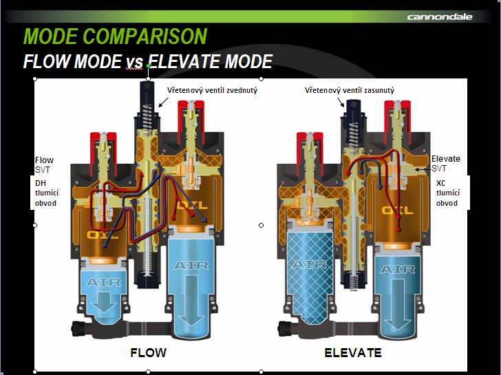 hlavový úhel je více xc. Pozitivní je, že i při ELEVATE modu se na kole