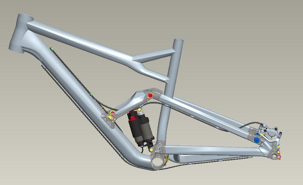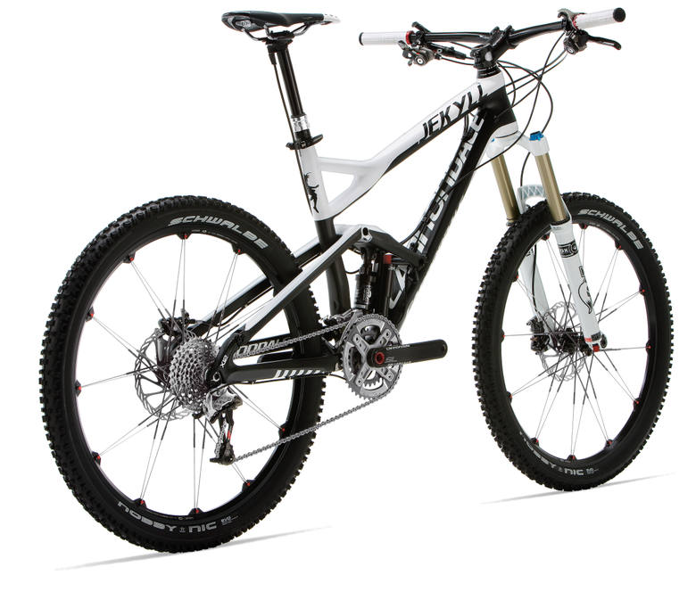 Přirozená skepse k čemukoliv novému či nekonvenčnímu, tolik typická pro každého Čecha, mě nabádá – v jednoduchosti je síla, co s inverzním tlumičem? Konvenční tlumič na svém kole můžu kdykoli během sezony nahradit jiným, když se něco stane… I přes různé pokusy ala Bionicon, konvenční tlumič změnu sagu-zdvihu-geometrie zvládnout nemůže. Podobný systém, ale v minulosti vymyslel Peter Denk pro Scott. Jeho Genius a Ransom už po světě nějakou dobu jezdí. Zdánlivá podobnost obou kol je nasnadě, ale je zde několik významných rozdílů. Tlumič na Jekyllu je schován uvnitř rámu, nikoli posazen před zadním kolem jako u Scotta. Nepřerušovaná sedlová trubka a téměř klasická konfigurace předního trojúhelníku jsou přínosem. Závěs zadní stavby – přepákovaný jednočep – to vše v sobě skrývá spoustu inovací.