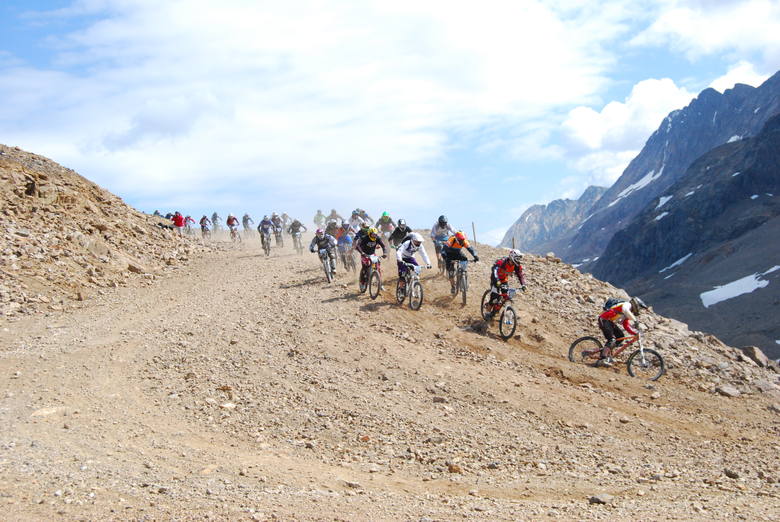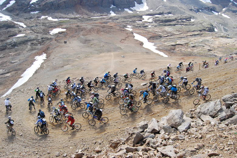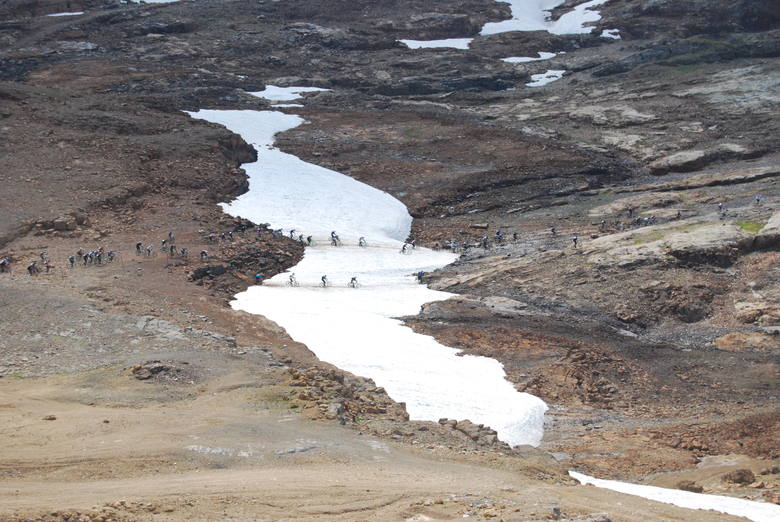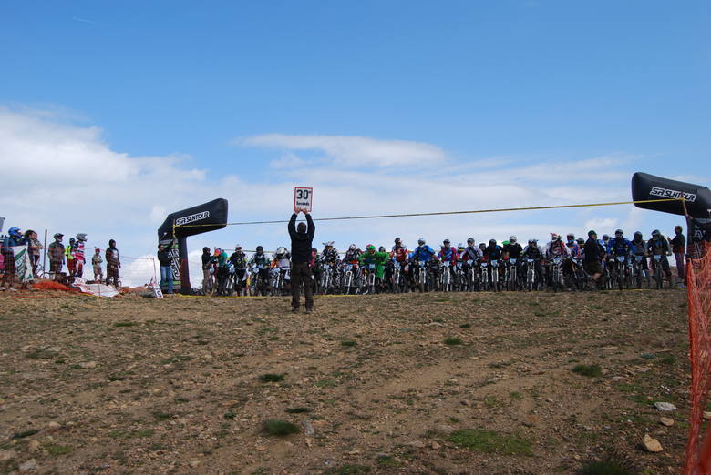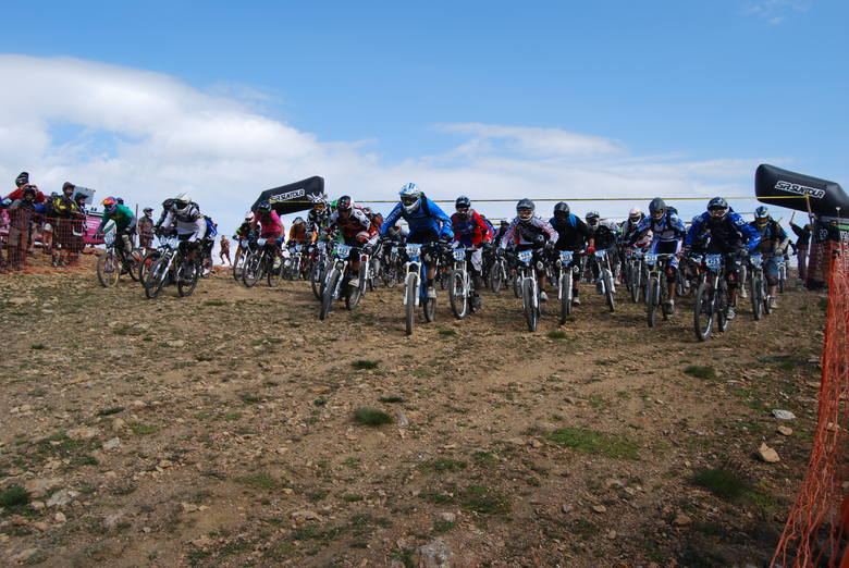 Startovací procedury se ujímá sám pan ředitel závodu George Edwards, cedule s značkou 5 minut jde dolů a nervozita se zvyšuje, minuta do startu nervozita maximální, 30 sekund do startu z repráků řve „Alarma alarma el ritmo fatal“ a vrtulník s kamerou se vynořuje zpoza hory – neuvěřitelně působivé, ještě teď mě jde mráz po zádech. A páska jde nahoru, všichni dupou co to jde, v první levé zatáčce smotka první řady jako kráva, naštěstí se vyhýbám, do druhé zatáčky jedu snad na pátém fleku, držím plnej. První sníh, hlavně nespadnout, paráda, podařilo je to za mnou. Rovinka k druhému sněhu, ježiši mě to nejede, tady mě ořežou, jezdec předemnou jede zhruba stejně, takto možná nejede všem stejně. Jedeme na objezd druhého sněhu a teď jen hamtání po rovině, dávám do toho vše, tady mě jich nesmí moc předjet, protože když to tady udržím, tak už mě nepředjedou.