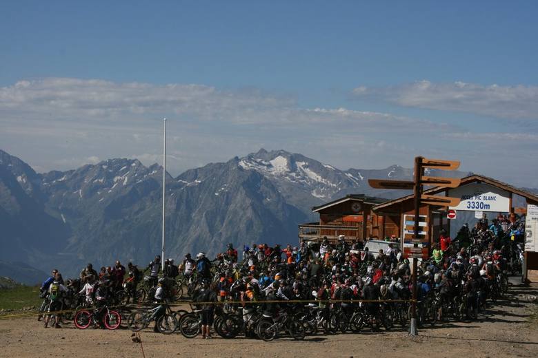 Na start na Pic Blanc je možné se dostat pouze lanovkou a její kapacita je omezena, takže každý závodník dostává po kvalifikaci na startovní číslo písmenko značící, ze které řady startuje a k tomuto písmenku se vztahuje i tzv. boarding time – čas kdy má být u spodní stanice lanovky. Start závodu je v devět nula nula a boarding time první řady je v 6:00!!! Na startu nezbývá než čekat, zkušení s sebou vezou zimní bundy, spacáky nebo alespoň dlouhé kalhoty. Nezkušení pak na start doráží v dresu s krátkým rukávem a kratasách – nepříliš lákavá představa čekání ve třech stupních nad nulou.