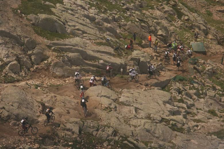 Ačkoliv je Mega označovaná jako downhill marathon – downhillových kol by jsi napočítal na prstech jedné ruky, téměř všichni jedou na enduro kolech v co nejlehčí konfiguraci, nášlapné pedály jsou na každém kole. Není se co divit, rozhoduje se na výjezdech, ve sjezdových pasážích, které nejsou příliš obtížné, lehká kola s přehledem obstojí a navíc možnost předjetí je téměř nulová, na většině je jedna hlavní stopa a místy, především v zatáčkách stopy dvě (vnitřek vs. venek).