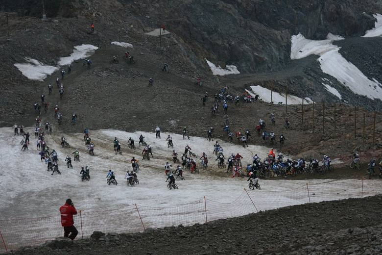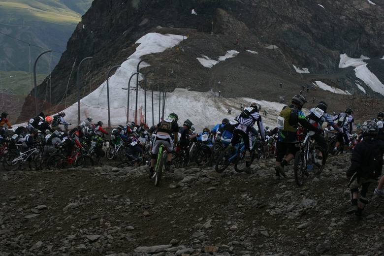 Specialita hlavního závodu je start a poměrně dlouhá doba jízdy na sněhu, startuje se z vrcholu Pic Blanc v nadmořské výšce 3300 metrů. Letošní zima byla na sníh v celé Evropě skoupá, podle organizátorů bylo v zimě na vrcholu o 4–5 metrů sněhu méně a dokonce museli uzavřít zimní sezónu ve středisku o týden dříve než bylo plánováno. Malé množství sněhu v zimě se samozřejmě projevilo i na Mega, v trénincích se jezdilo po kamenech, ale pomocí rolby se do samotného závodu podařilo navést sníh na trať, tak aby Mega nepřišla o svůj specifický start na sněhu.