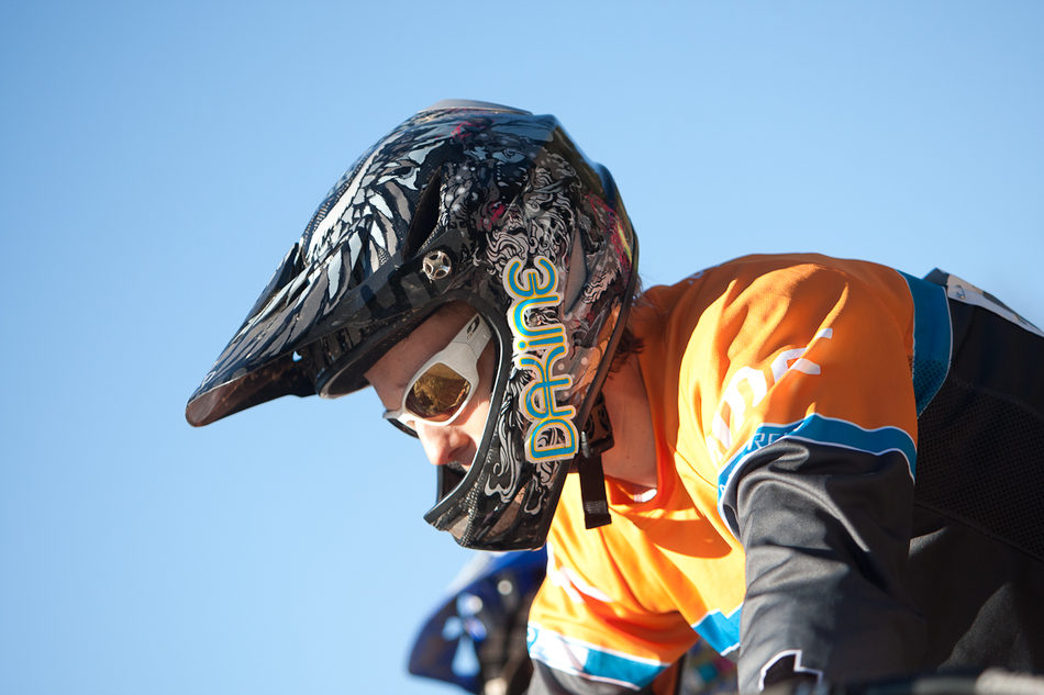 Dan Atherton v čele pelotonu krátce po startu
