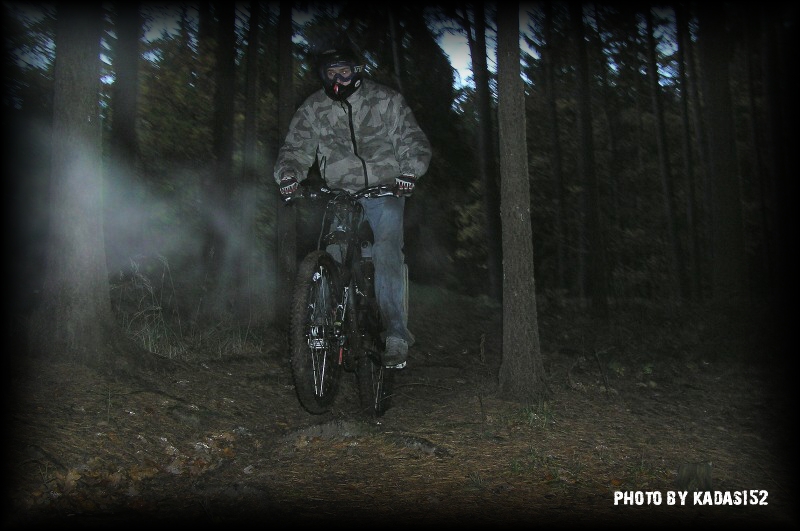 Popis: zadní kolo úplně prázdný, bahno, kosa no a co