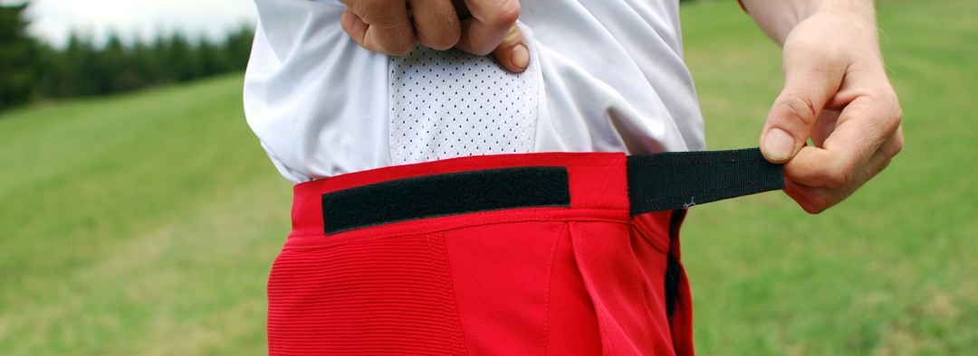Co se týká změny střihu, nohavice se v poslední generaci mírně prodloužily, cílem tvůrců bylo samozřejmě v první řadě zabránit nejtrapnější věci na celém bikování, tj. aby na fotkách nebyla mezera mezi kolenním chráničem a kraťasema. Už Exupéry věděl, že co je opravdu důležité, je očím neviditelné. A tím se dostáváme k novému materiálu. Starší kraťasy byly v pohodě, pevný materiál chránil proti prodření a pružné panely v rozkroku a na zadku zachraňovaly pohodlí. Novinka je naladěná úplně jinak, celé kraťasy jsou spíchnuté z pružného, ale přitom poměrně silného materiálu, takže se natahuje všude. To se hodí hlavně pokud máte, asi jako každý člověk, co jezdí na kole, velký stehna, prdel ale zase nemá kilometr v pase. Takže dřív vám byly kraťáky (i přes případné stahování v pase) volné v pase a akorát přes nohy, nebo akorát v pase a obří přes nohy, takže jezdíte v plachtě. A už odpadá aerodynamika. A pokud všechno pruží, můžou se kraťáky přizpůsobit nejenom postavě, ale i pohybům. A navíc, kdyby to bylo fakt mega z kopce, máte ještě pružnější kus materiálu na zadku, aby šlo jít víc za sedlo.