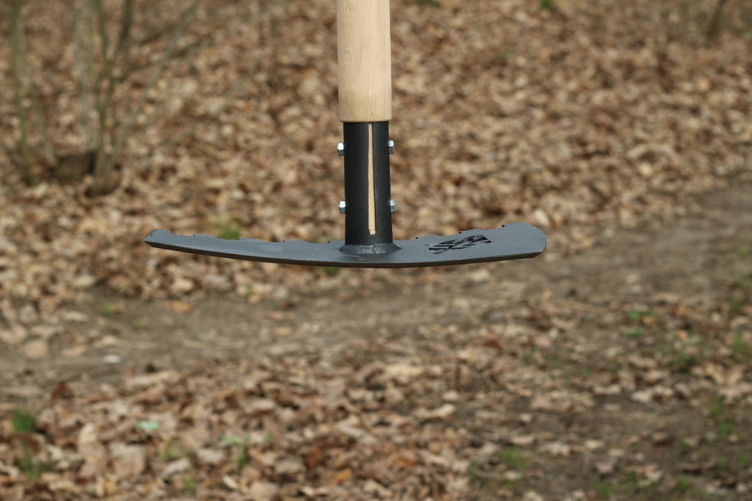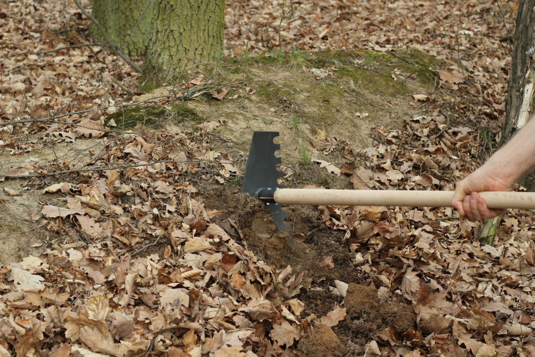 V okolí Brna máme minimum míst s kamenitou půdou, spíše se jedná o klasickou lesní půdu do které se dobře kope s téměř každým nástrojem, největším znepříjemňovatelem kopání jsou kořeny. Freeride Py$o ShapeMaster díky extra dlouhé násadě je při kopání taková motyka na drogách, kořínky, kořeny i fakt silné kořeny vůbec neřešíš, prostě se rozmáchneš a hotovo, kořen je na dvě půlky. I hrabání je snadné, díky malým zubům se ti za ně nic nezachytává a práce jde dobře od ruky, zde je vyšší váha trochu nevýhodou, nadřeš se o fous víc, ale zase s sebou netaháš na kopec dva nástroje… Udusávání, kvůli prohlému tvaru nástroje není udusávací plocha tak velká jako kdyby to byla rovná, ale přesto je dostatečná, ale kdo by udusával dráhy, nejlepší udusávač jsou přece pneumatiky bajku.
