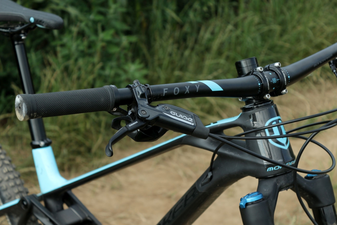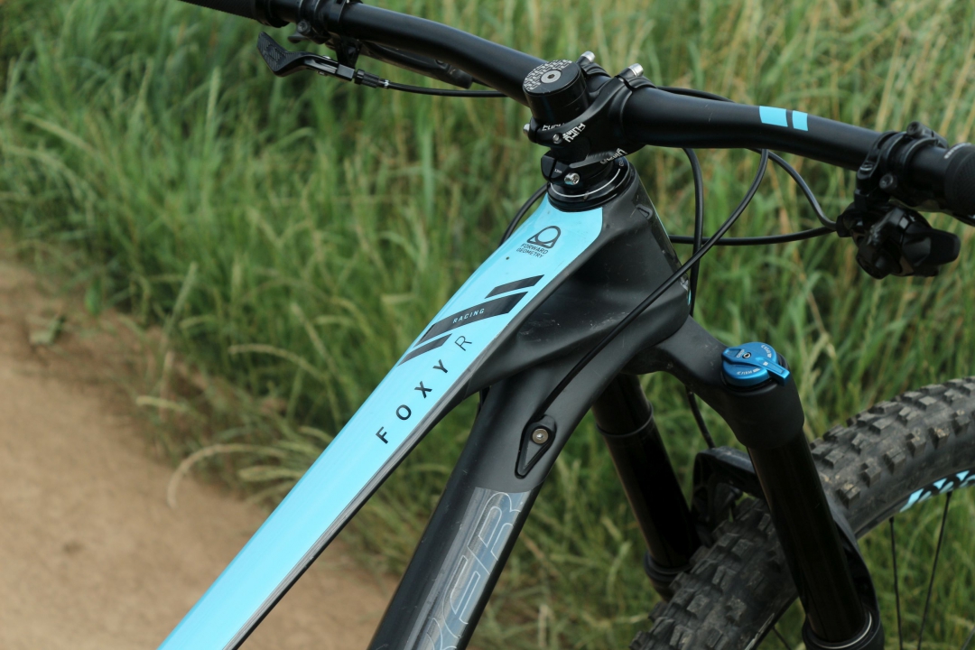 Geometrie je příjemná, ovšem není extrémně vyhrocená ani jedním směrem (ani extrémní downhill, ani extrémní šlapací mašina). Určité, příjemné, tušení začínám mít ve chvíli, kdy vidím naživo osazení kola. Testbike Foxy Carbon R má samozřejmě „plastový“ rám a až na pár výjimek je osazení jasně zaměřený dvěma směry. První z nich je směr „z kopce dolů“ a druhým „maximální zábava“.