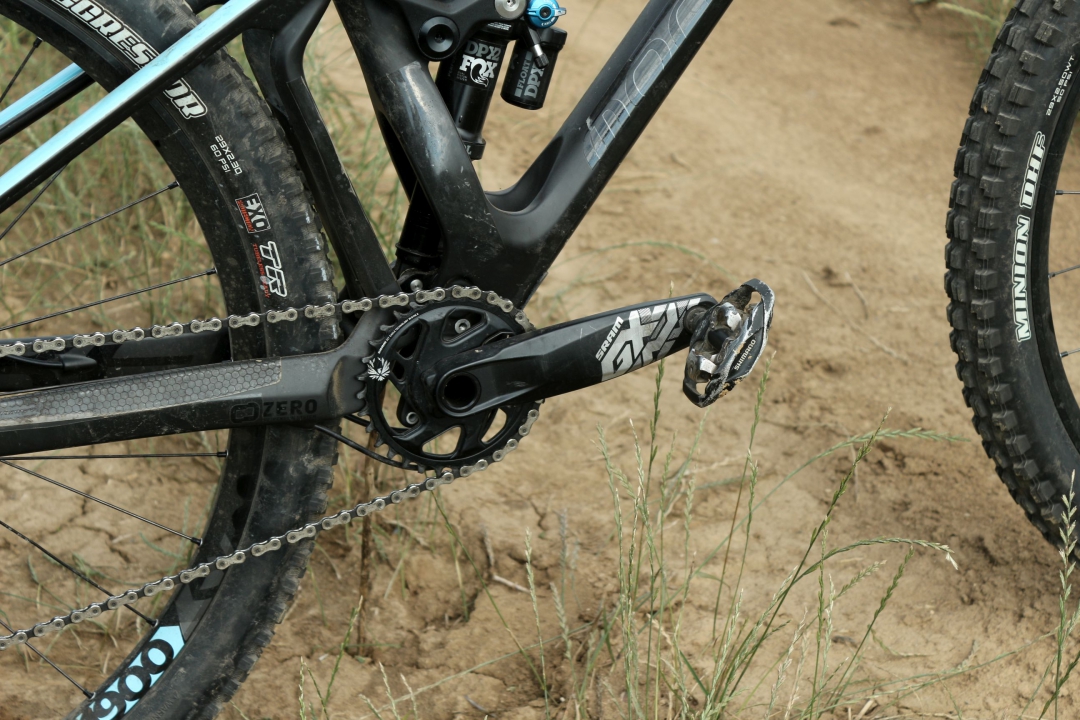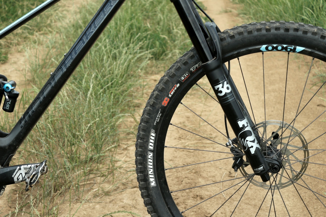 Prim hraje pořádná vidlice, Fox Float 36 se 160mm zdvihu a pořádná kola. Tuhá a lehká DT Swiss E 1900 s vnitřní šířkou 30mm obutá do 2,4 DHRka v 3C směsi vepředu a rychlým 2,3 Agressorem vzadu (obě Maxxis) slibují jak trakci, tak rychlost. Jinak je kolo osazeno GX Eaglem, tlumičem DPX2 od Foxu. Trochu se šetřilo na brzdách, levnější Sram Guide T něco ubrzdí, ale na velké kopce to úplně není. To víme. Samozřejmě nechybí teleskopická sedlovka OnOff, u Mka se 125mm zdvihu, u Lka a víc 150mm. Kokpit pak ultrakrátký, 30mm představec Onoff a 780 řídítka.