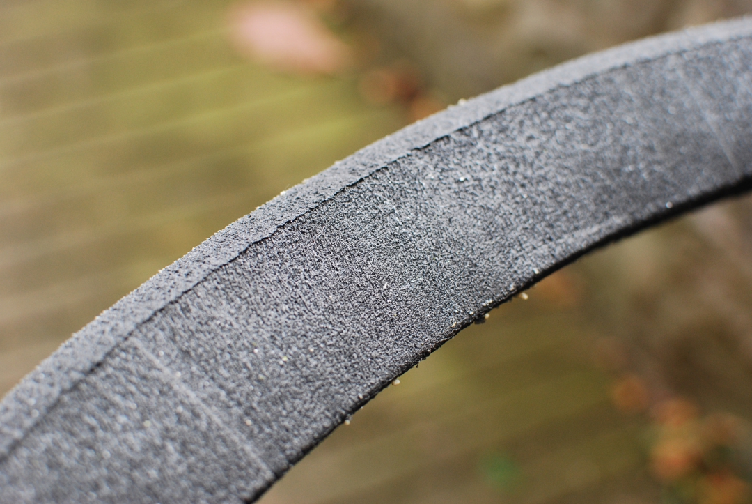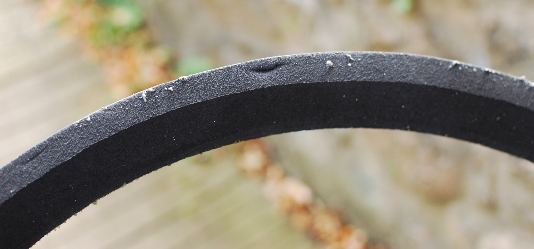 Pokračujme ve srovnávání s CushCore. Ten, díky tvaru,lépe drží plášť v patkách a zabraňuje odlepení patky pláště od ráfku. Toto Panzer vůbec neřeší, tvar takovou ochranu neomožňuje. Ale zase umožňuje lepší distribuci bezdušového tmelu.