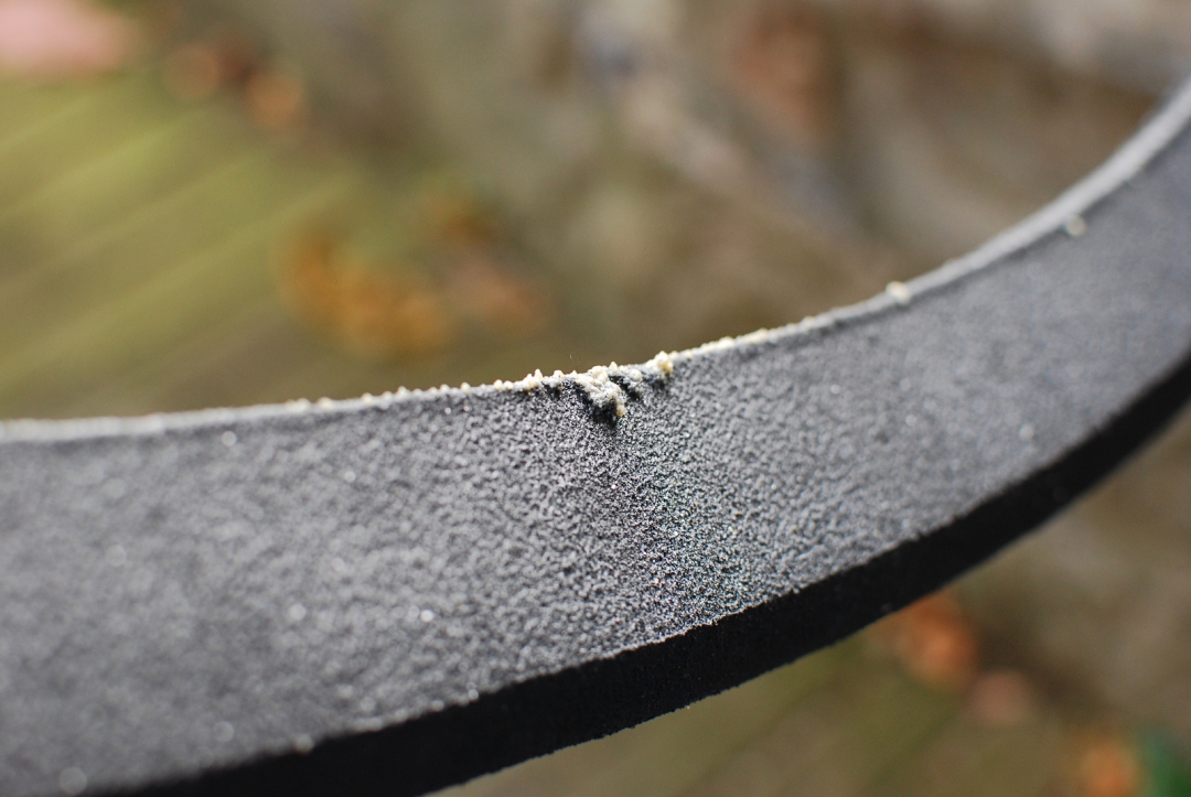 Jak jsem výše psal o tom, že Panzer díky svému tvaru může být kolem ráfku pěkně obtažený, tak zhruba po měsíci používání (a to mám najeto maximálně najeto 500 km i včetně jednoho ostrého francouzského enduro závodu (report) již Panzer těsně obtažený kolem ráfku rozhodně není. Dalo by se říci, že není obtažený vůbec. Kdo by jej označil jako vytahaný, tak by nebyl daleko od pravdy. Na funkci sice to vliv nemá, při montáži však může překvapit.
