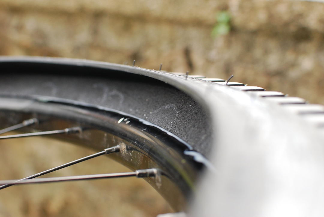 Správné proudění bezdušového tmelu v plášti je v případě defektu zásadní, protože jen pokud mlíko přiteče včas, má šanci díru zaslepit. Když je však vložka nalepena ráfku natěsno a nemá optimální tvar, hrozí, že se mlíko na místo určení nedostane. Například tvar CushCore přímo nahrává tomu, že když řízneš plášť těsně nad ráfkem, tak tmel téměř nemá šanci přitéct, protože CushCore je nalepen na plášti a volného prostoru v této oblasti rozhodně není na rozdávání.