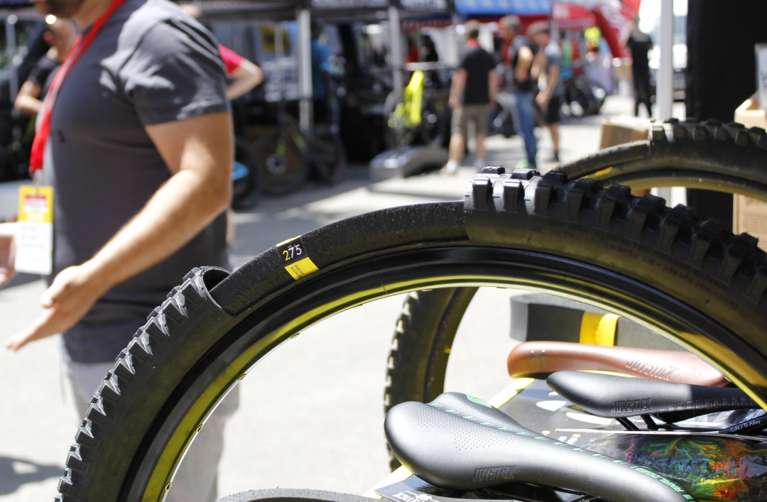 29 mm, plášť Maxxis Minion DHR II 2.4" WT a použil bezdušový tmel Stans