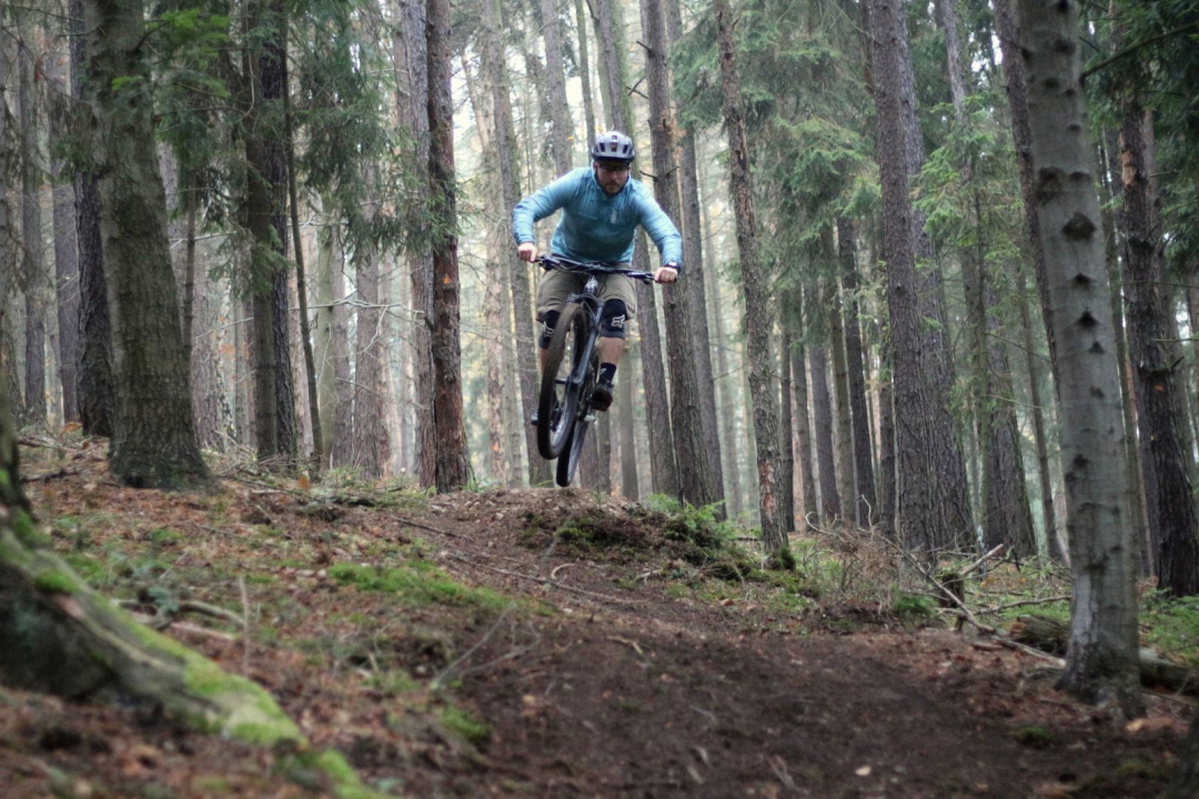 A díky tomu mám dost síly a chuti na to, pro co tohle kolo vzniklo. Na ježdění z kopce. Dávám dvě jízdy. Vlastně jenom abych doladil posed, tlumení a tak.