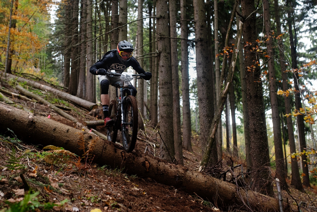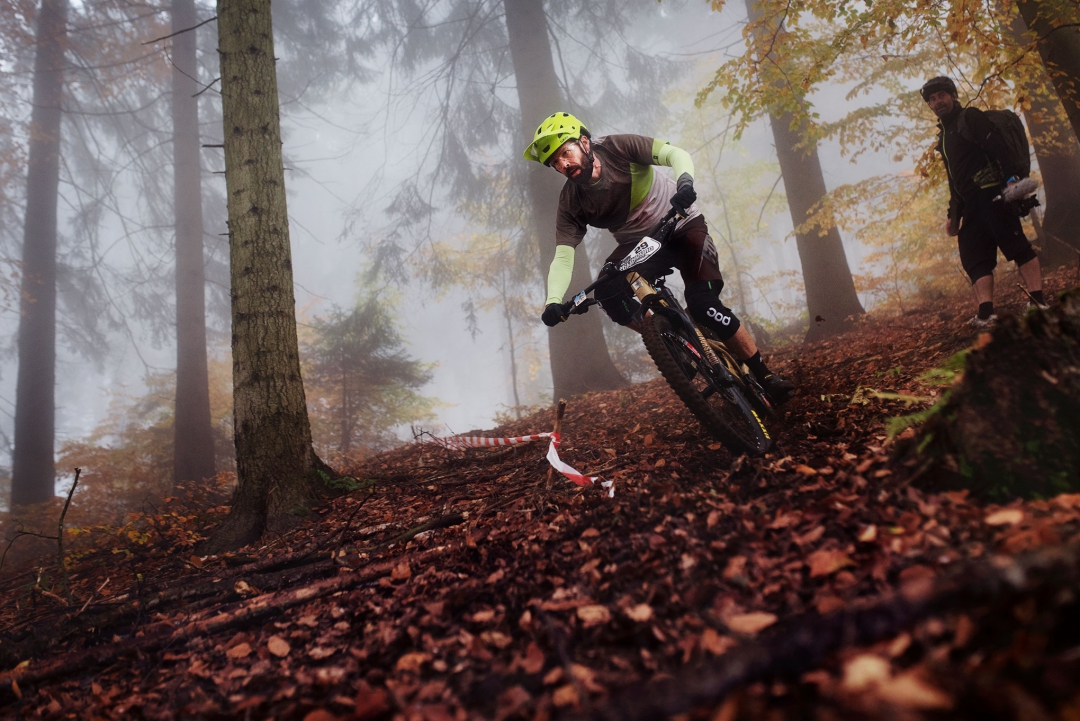 Transfer na dnes poslední trail je výživný. Naštěstí je na něm bufet. Někteří podléhají křečím nebo podzimním depresím, ale na start se stavíme v komplet sestavě. Tato erzeta kombinuje bikeparkovou lajnu ukrytou pod spadaným listím s výlety do neznáma. Je dlouuuuuuuuhááááá ale jak. Houpeme se, skáčeme, letíme dolů … no jako orli. Sice ne nejrychlejší, ale rozhodně dole nejspokojenější. Pár míst, kde si soupeři ustlali bylo. Ale co by to bylo za enduro, kdyby to bylo bez pádu.