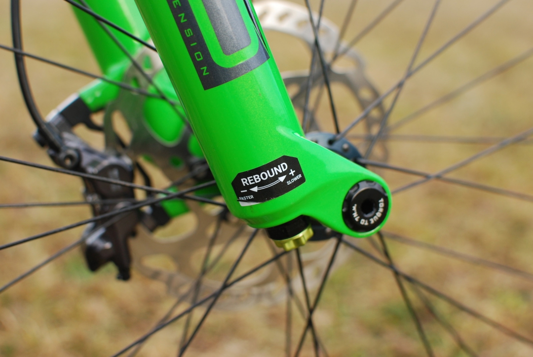 Použitý tlumič DVO Topaz T3Air je v podstatě Suntour Triar v zeleném a