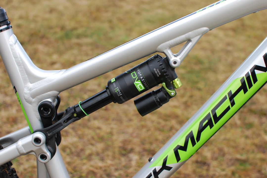 Novinkou značky Rock Machine pro rok 2020 je použití odpružení značky DVO u nejvyšších modelů Blizzardu. Jestli jsou nějaké barvy typické pro odpružení, tak rozhodně platí, že červená je Rockshox Boxxer, modrá Rockshox Sid a napříč celou řadou modelů DVO je to výrazná zelená. Ta samozřejmě ani u Rock Machinu nechybí. Kdybych byl hnidopich, pokárám Rock Machine za to, že barevné akcenty na rámu nemají zcela stejný odstín jako DVO zelená.